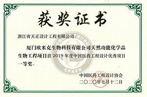近日,根據中國醫藥工程設計協會《關于公布“2019年度全國醫藥優秀工程設計”推薦結果》(藥設協字〔2020〕第04號),公司4個項目榮獲2019年度全國醫藥優秀工程設計獎。其中:廈門歐米克生物科技有限公司天然功能化學品生物工程項目榮獲一等獎,正大青春寶(德清)藥業有限公司固體制劑及中藥物提取注射劑項目榮獲二等獎,三圣藥業有限公司醫藥項目和浙江新東港藥業股份有限公司固體制劑項目榮獲三等獎。