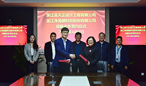 近日,浙江省天正設計工程有限公司與浙江凈源膜科技股份有限公司共同簽署戰略合作協議。雙方基于“優勢互補、資源共享、合作共贏”的原則,就高強纖維復合PTFE膜產品在工程項目中的應用達成一致。