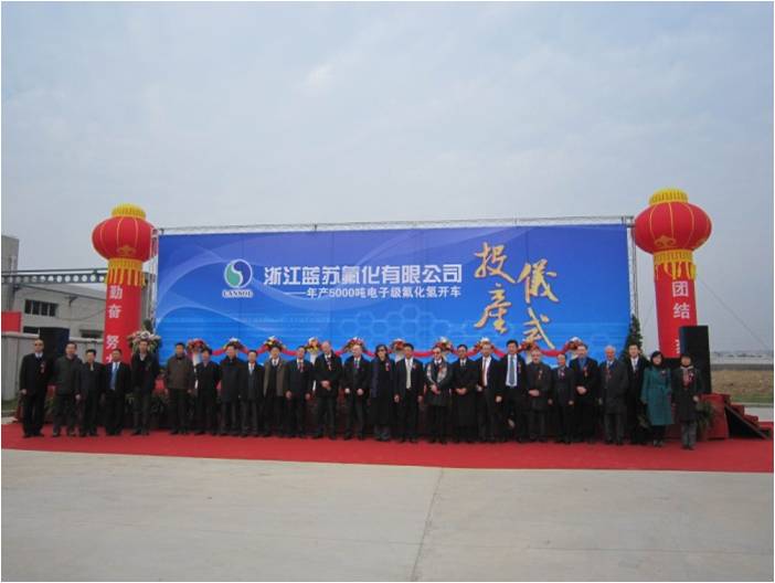 12月10日,我司工程總承包項目―浙江藍蘇氟化有限公司電子級HF項目投產儀式在衢州高新技術園區隆重舉行。公司副總經理嚴和欽及商務部、資產財務部、項目經理等有關人員參加了投產儀式。