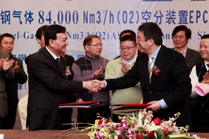 2011年1月30日,我司與寶鋼集團氣體營運中心、林德工程(杭州)公司在杭州隆重舉行EPC項目簽約儀式。寶鋼集團氣體營運中心盛中克總經理、林德工程(杭州)公司總經理詹家方和我司萬軍總經理等領導出席了簽約儀式。