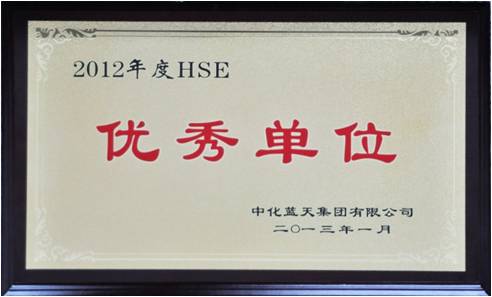 1月28日,經(jīng)中化藍(lán)天集團(tuán)公司考核評定,我司榮獲中化藍(lán)天集團(tuán)非高危行業(yè)企業(yè)2012年度“HSE優(yōu)秀單位” 稱號。