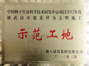 由我司承擔的工程管理項目--中國種子生命科學技術研發中心項目 ,經武漢市建委考核評定,榮獲安全文明“黃鶴杯”及文明施工“示范工地”榮譽稱號。