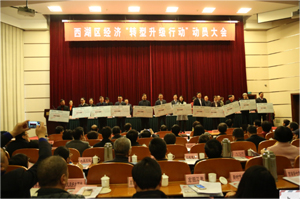 1月11日,西湖區(qū)召開經(jīng)濟(jì)“轉(zhuǎn)型升級行動”動員大會,旨在表彰對西湖經(jīng)濟(jì)社會發(fā)展作出特殊貢獻(xiàn)的企業(yè)。公司榮獲2016年度西湖區(qū)企業(yè)經(jīng)濟(jì)發(fā)展貢獻(xiàn)獎,董事長萬軍參會并上臺領(lǐng)獎。
